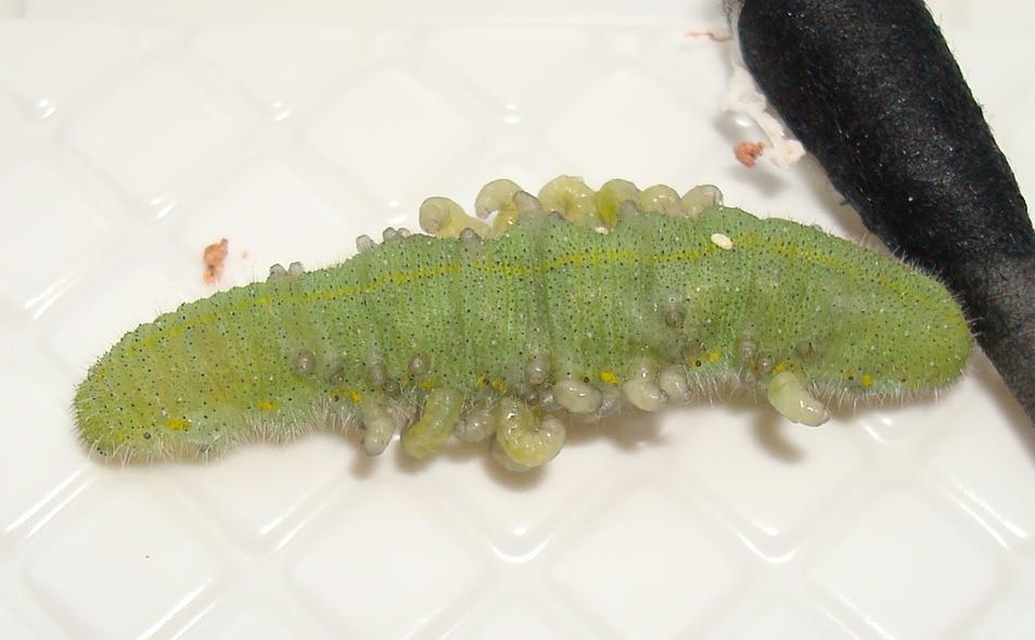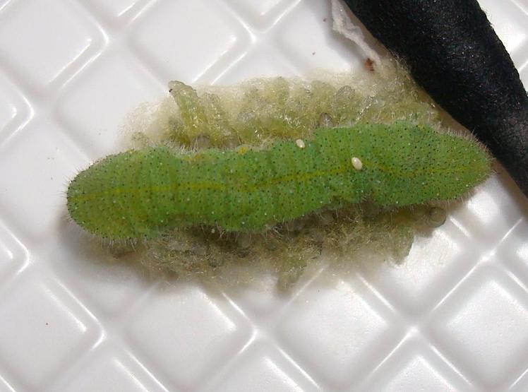 アオムシコマユバチの幼虫でした。
