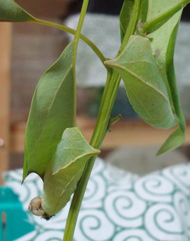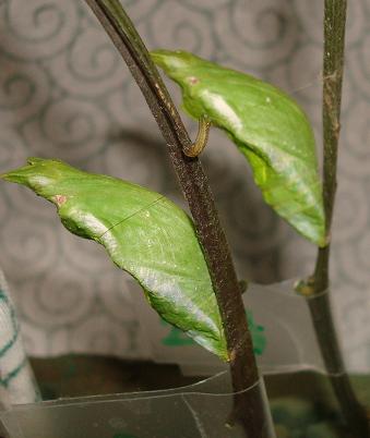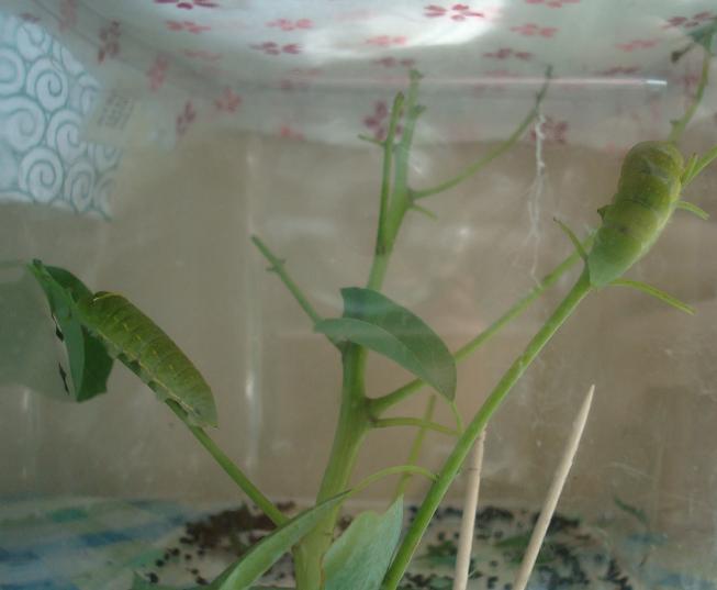 撮影後に左側のアオスジくんが前蛹くんの葉を結構食べてしまって