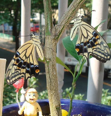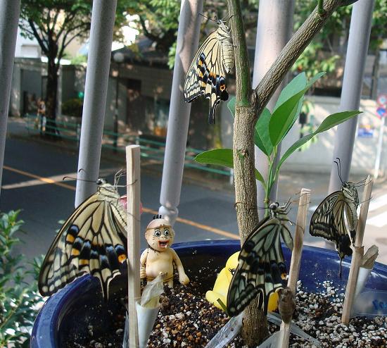 という事で皆が毎日羽化するレモンの苗で記念撮影