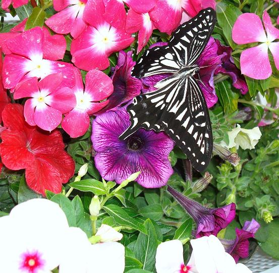 雨の日の羽化は昨年同様、ベランダの花に放蝶し