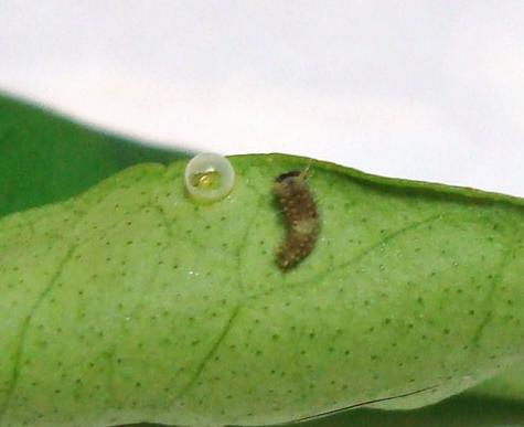 昨年も芽が出てきたばかりのオレンジに産卵して
