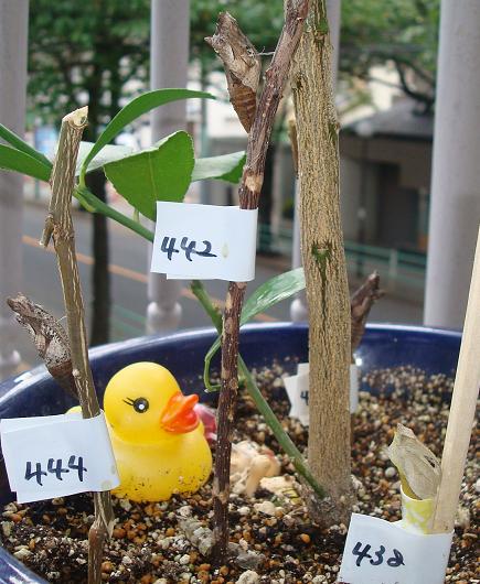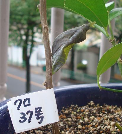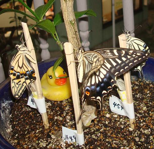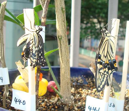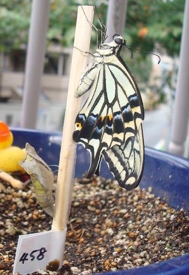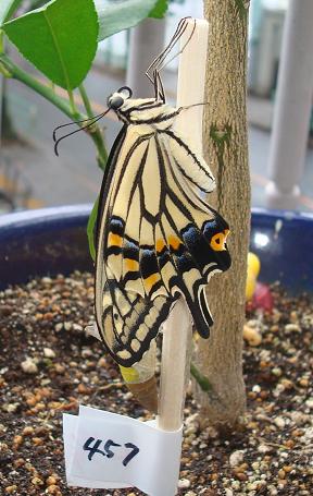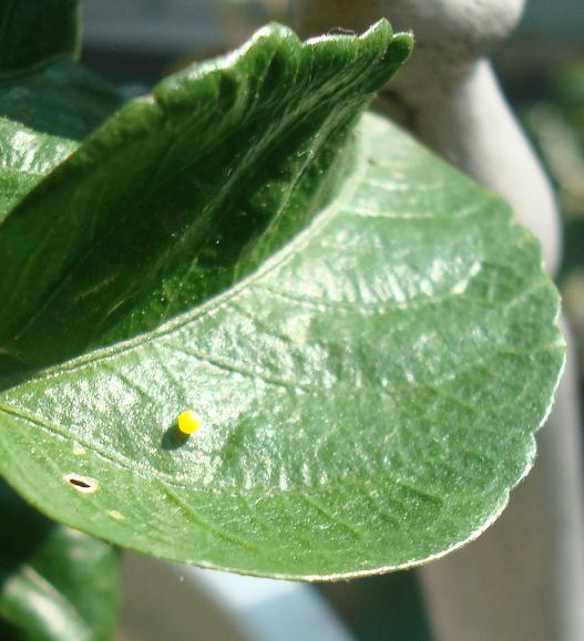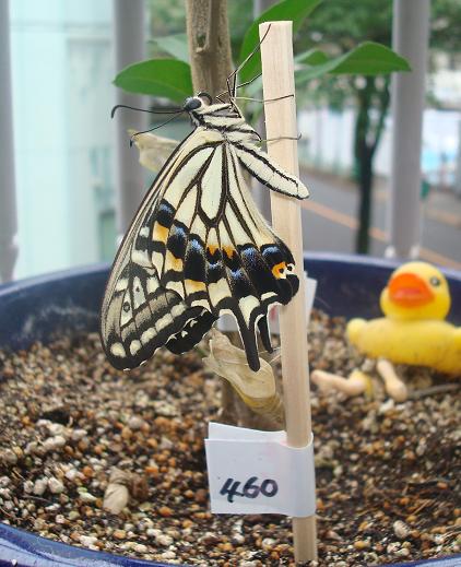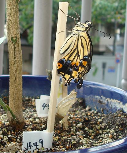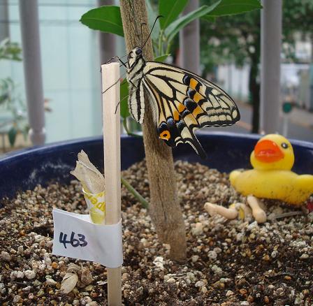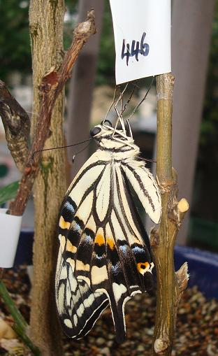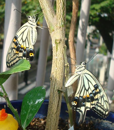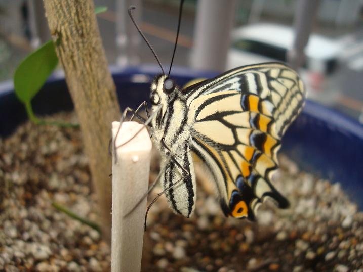 いつものように翅が乾いた後は、レモンの苗に移します。