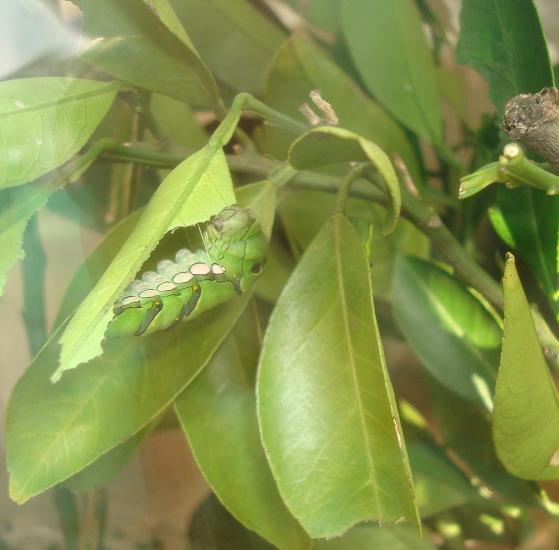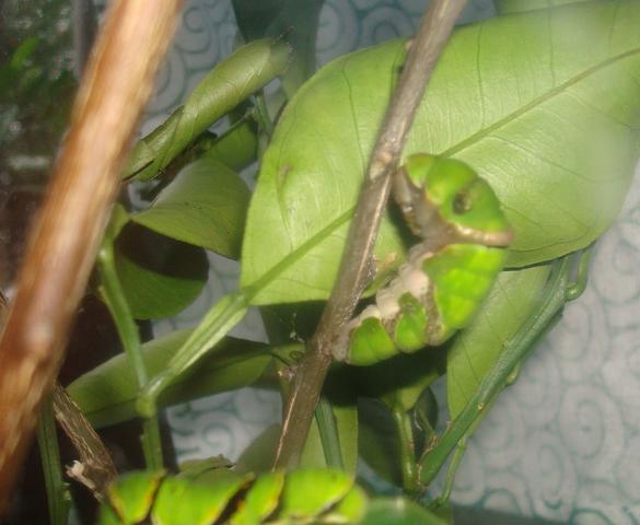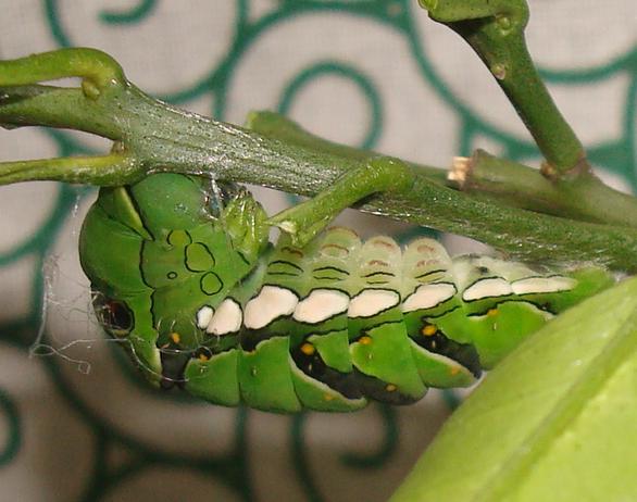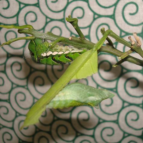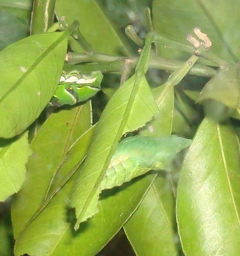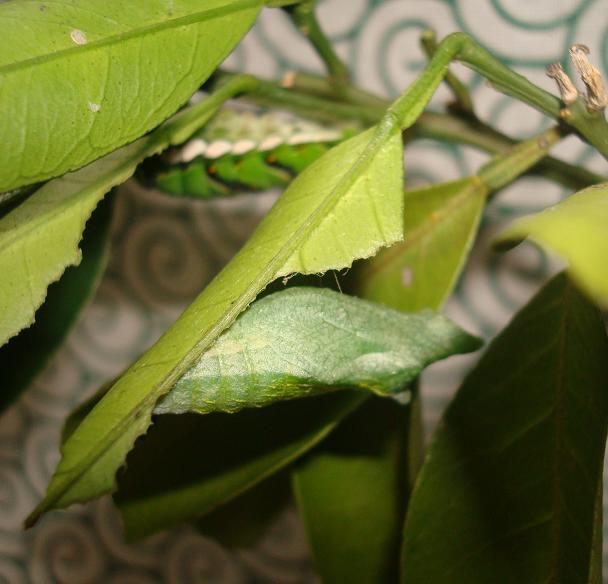 食草の枝ではなく葉にくっついてすでに前蛹状態(;・∀・)