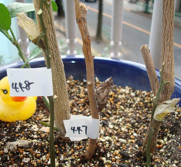 435号と436号は仲良く同じ枝にて蛹になっています。