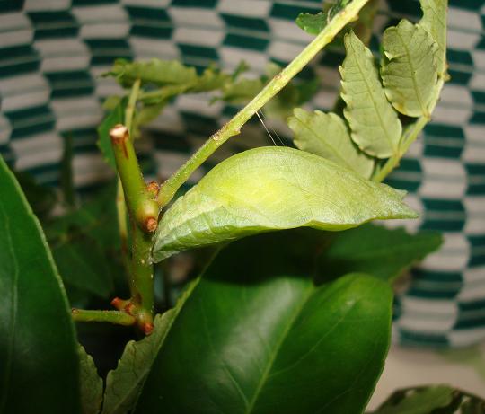 昨夜のカラスアゲハはとっても綺麗な色で蛹になりました。