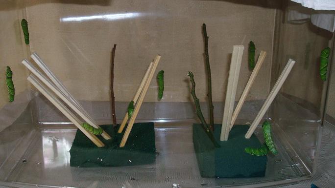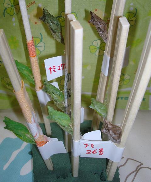 リハビリイモで忙しくて上段の蛹もまだ割り箸へ